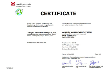 取得IATF16949:2016、ISO9001等體系認證